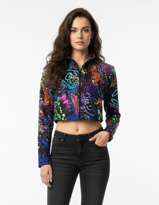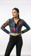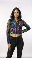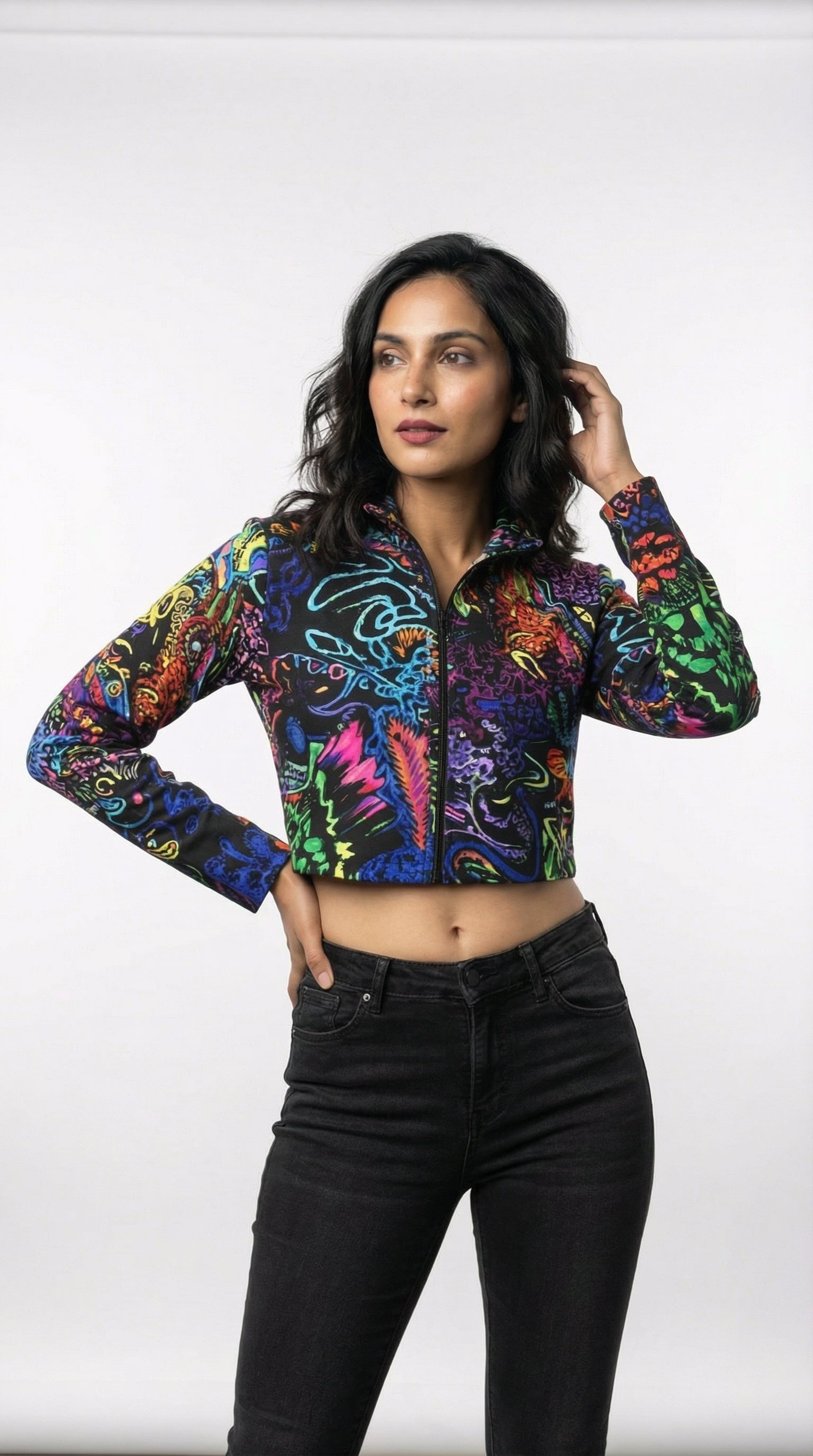 Urban Pitara Athleisure Crop Jacket - high definition digitally printed; top notch fabric; call it streetwear; fashionable and exercise material - pair em with leggings or shorts or denims. More Details: 4Way Lycra Fabric HD Digital Print Model Images are for Fitting referenceUrban Pitara Athleisure Crop Jacket - high definition digitally printed; top notch fabric; call it streetwear; fashionable and exercise material - pair em with leggings or shorts or denims.