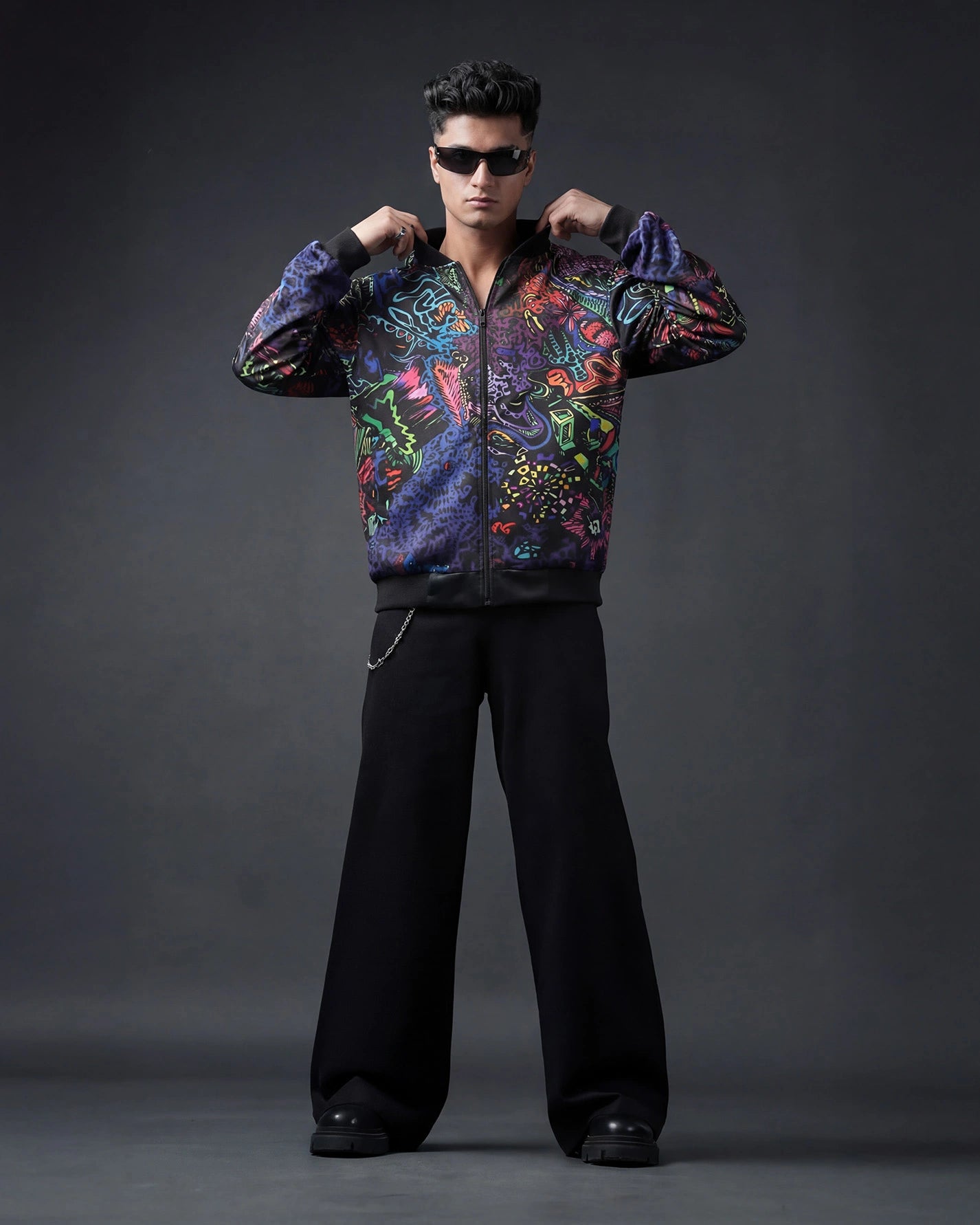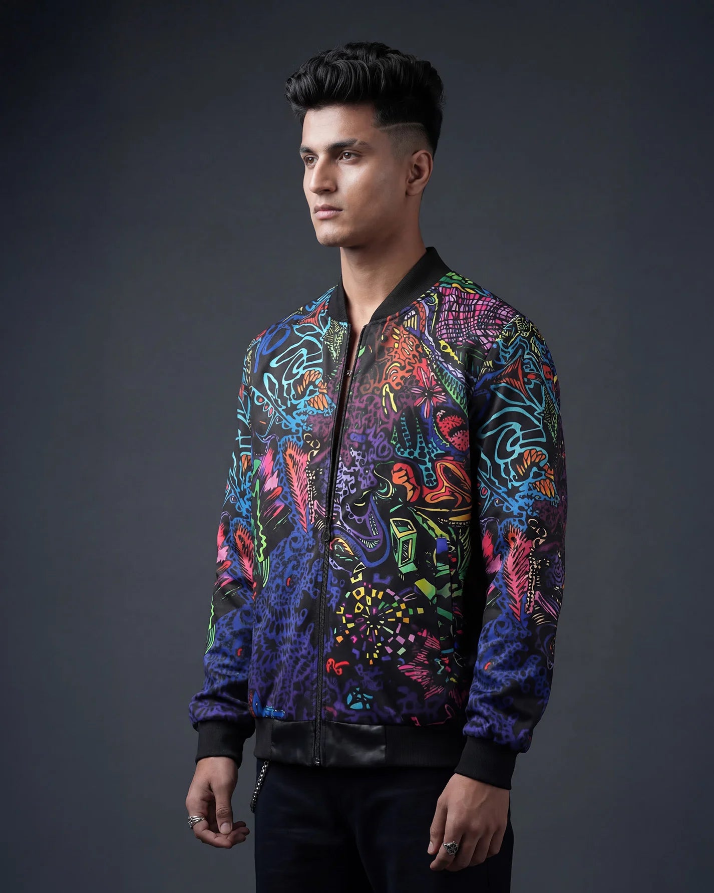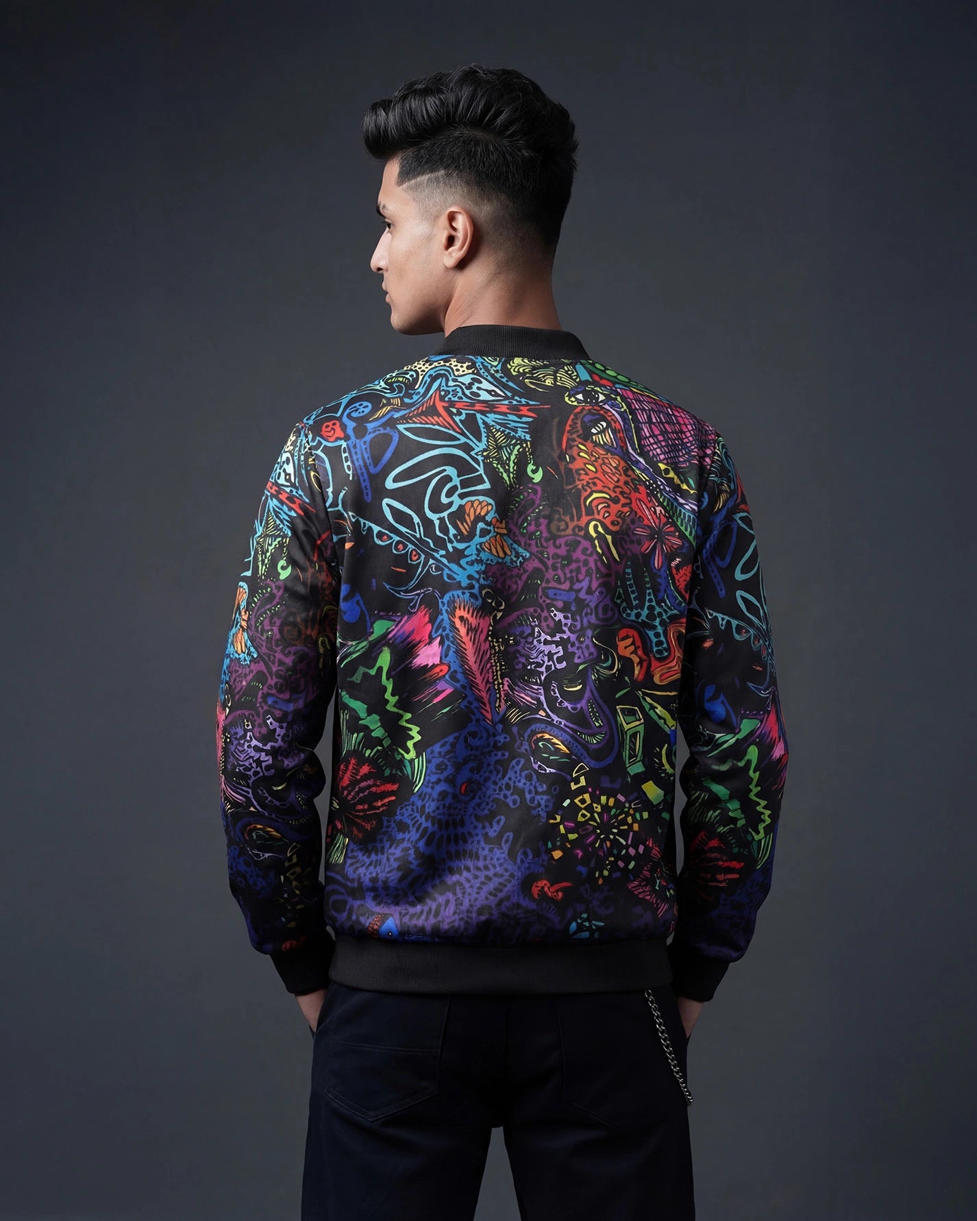 Introducing the Urban Pitara Bomber Jacket: digitally printed in high definition. Whether you're hitting the club scene or the streets, this lightweight and durable jacket is the perfect mix of warmth and comfort. Ideal for achieving that airport-ready look! Available in Two Special Fabrics All-Season ( Diagonal Fabric) Winter Fleece (For North Indian winters) More Details: Full Sleeves Regular Fit Full Front Open Zipper Style Two Side Pockets Ribbed Collar, Sleeves and WaistIntroducing the Urban Pitara Bomber Jacket: digitally printed in high definition. Whether you're hitting the club scene or the streets, this lightweight and durable jacket is the perfect mix of warmth and comfort. Ideal for achieving that airport-ready look!