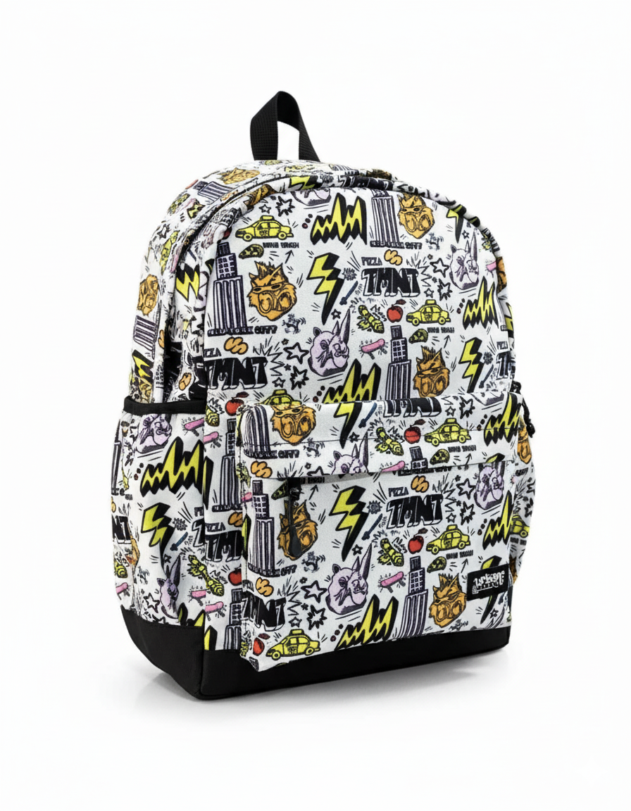 Urban Pitara Backpacks 1. Digitally Printed 2. Canvas Bags 3. Washable 4. With Laptop Sleeve inside 5. Bottle Holders on both sides 6. Size of bag is 18"x 16" x 4.5" (Size in inches) 7. Backside is Solid Black Colour NOTE: Internal images are for size reference only, print will be same as 1st picture.Urban Pitara Backpacks
