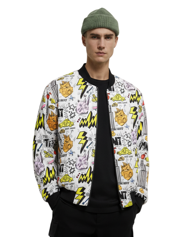 Introducing the Urban Pitara Bomber Jacket: digitally printed in high definition. Whether you're hitting the club scene or the streets, this lightweight and durable jacket is the perfect mix of warmth and comfort. Ideal for achieving that airport-ready look!