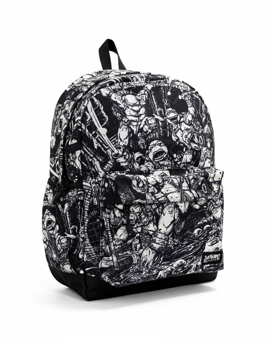 Urban Pitara Backpacks 1. Digitally Printed 2. Canvas Bags 3. Washable 4. With Laptop Sleeve inside 5. Bottle Holders on both sides 6. Size of bag is 18"x 16" x 4.5" (Size in inches) 7. Backside is Solid Black Colour NOTE: Internal images are for size reference only, print will be same as 1st picture.Urban Pitara Backpacks