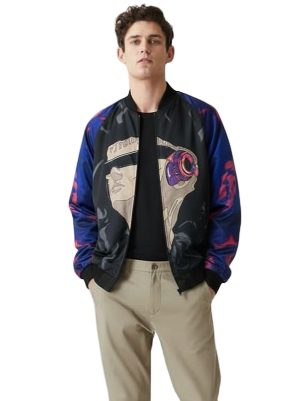 Introducing the Urban Pitara Bomber Jacket: digitally printed in high definition. Whether you're hitting the club scene or the streets, this lightweight and durable jacket is the perfect mix of warmth and comfort. Ideal for achieving that airport-ready look!