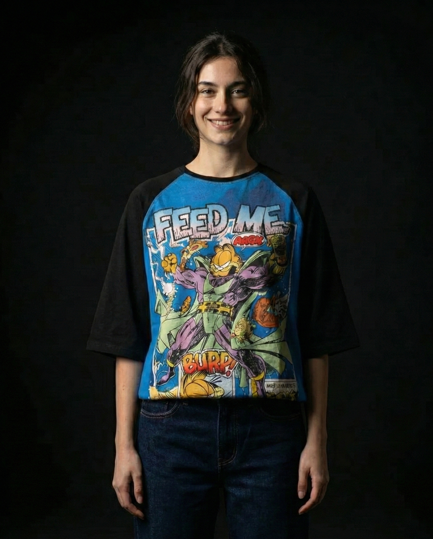 Garfield Feed Me Black Oversized Raglan T-shirt