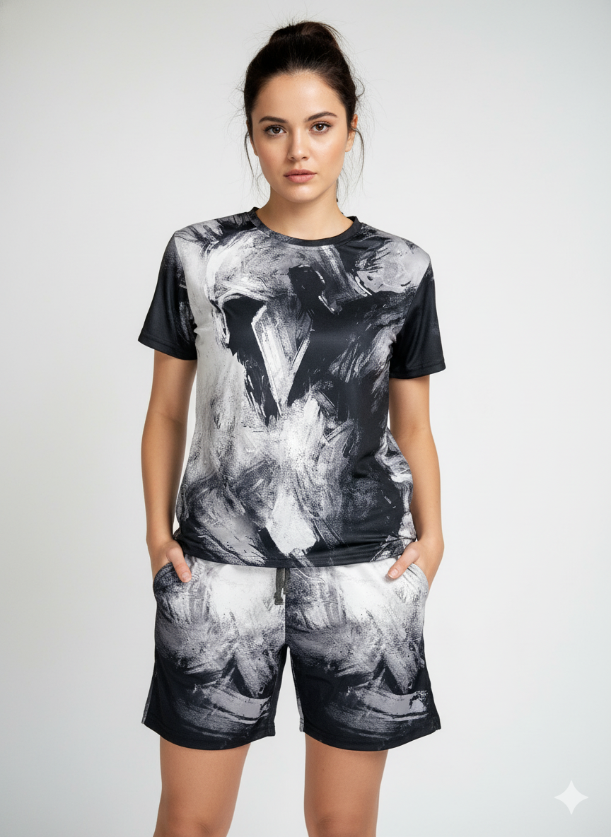 Urban Pitara T-shirt and Shorts Combo - super uber cool; always reel ready to tik and tok anywhere; stands out in an awesome way; club with it, lounge with it, rock it like a star. Peppy Artworks Made with Soft Dri-fit dot Knitted fabric Cozy enough for LoungewearUrban Pitara T-shirt and Shorts Combo - super uber cool; always reel ready to tik and tok anywhere; stands out in an awesome way; club with it, lounge with it, rock it like a star.