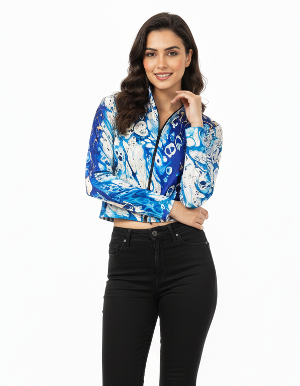 Urban Pitara Athleisure Crop Jacket - high definition digitally printed; top notch fabric; call it streetwear; fashionable and exercise material - pair em with leggings or shorts or denims. More Details: 4Way Lycra Fabric HD Digital Print Model Images are for Fitting referenceUrban Pitara Athleisure Crop Jacket - high definition digitally printed; top notch fabric; call it streetwear; fashionable and exercise material - pair em with leggings or shorts or denims.