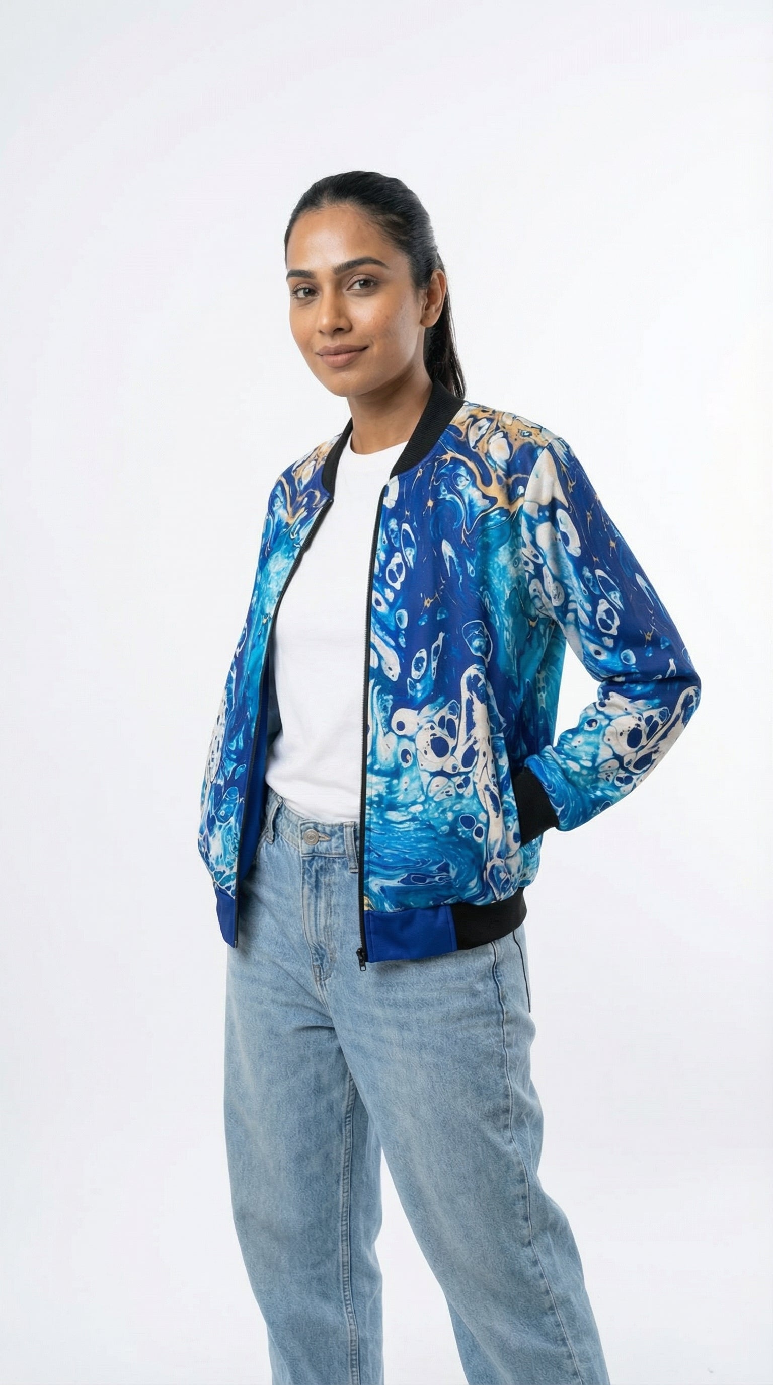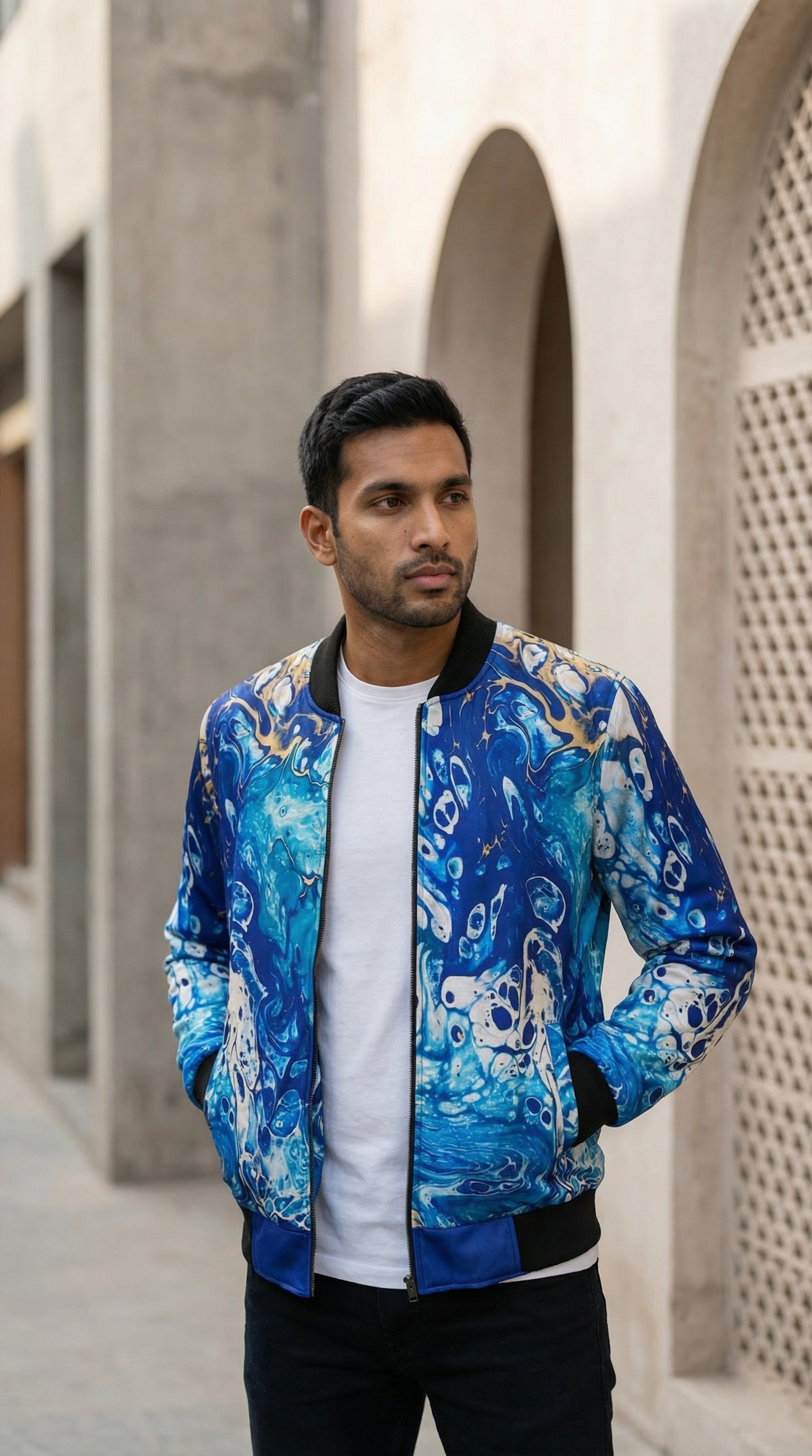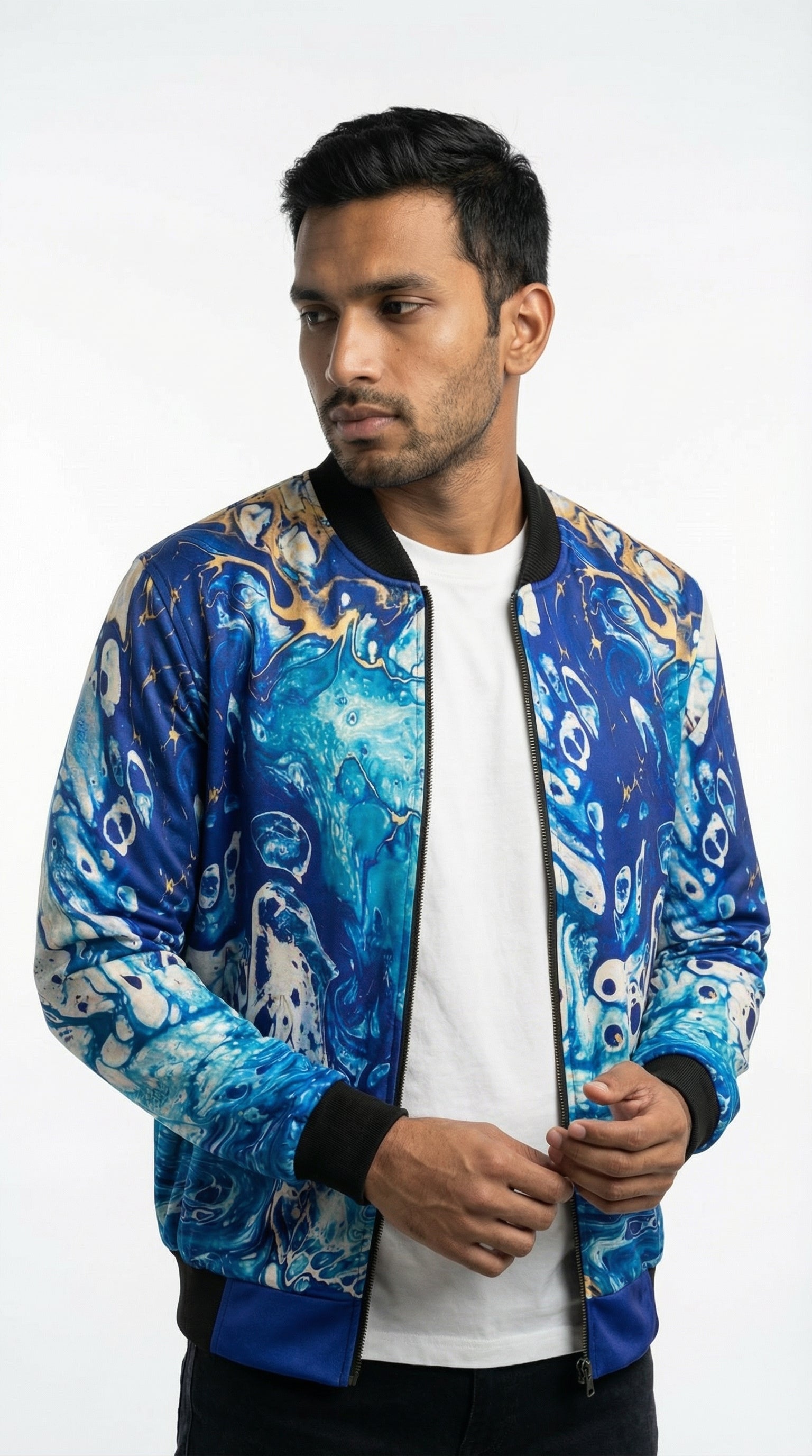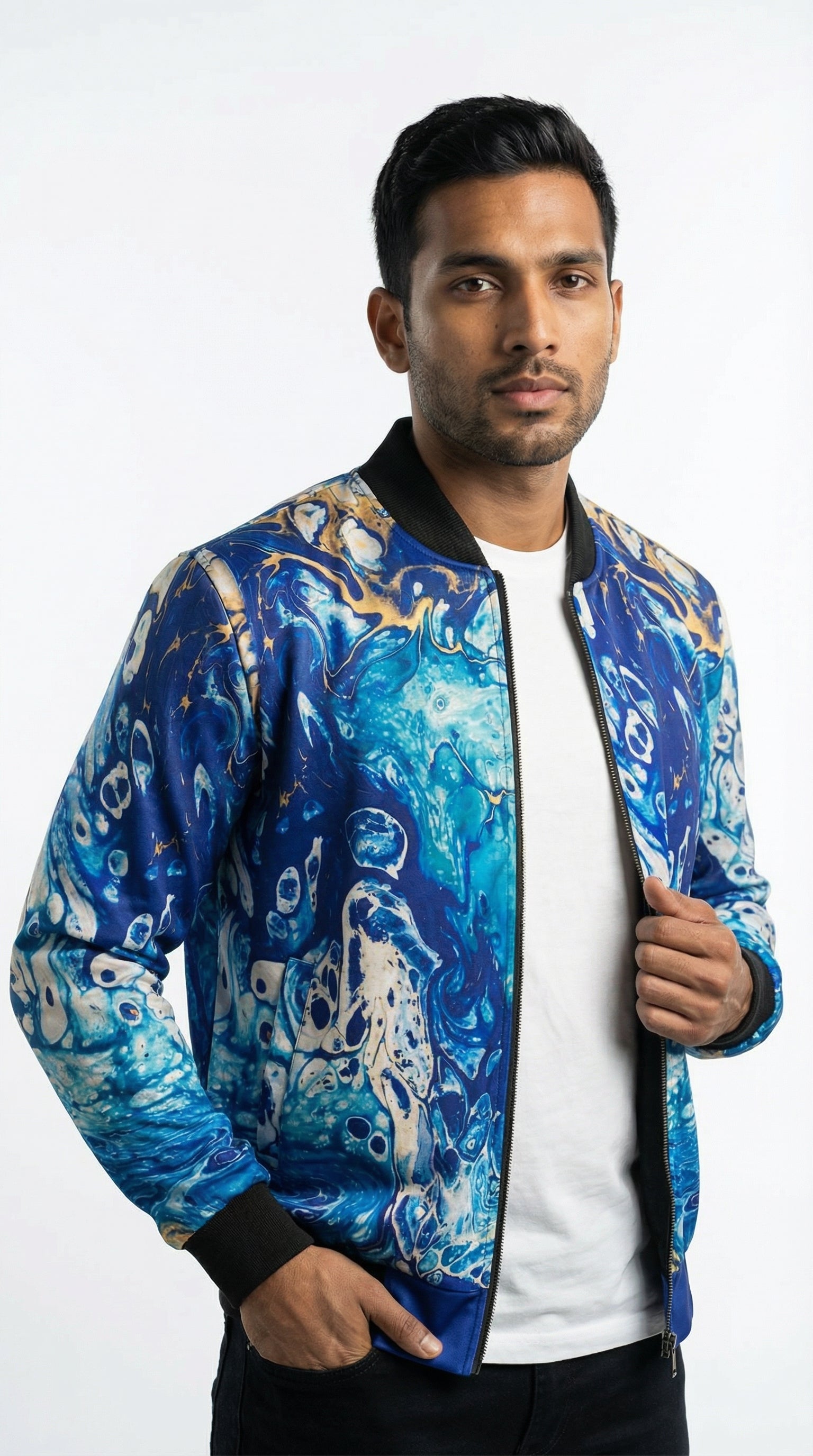 Introducing the Urban Pitara Bomber Jacket: digitally printed in high definition. Whether you're hitting the club scene or the streets, this lightweight and durable jacket is the perfect mix of warmth and comfort. Ideal for achieving that airport-ready look! Available in Two Special Fabrics All-Season ( Diagonal Fabric) Winter Fleece (For North Indian winters) More Details: Full Sleeves Regular Fit Full Front Open Zipper Style Two Side Pockets Ribbed Collar, Sleeves and WaistIntroducing the Urban Pitara Bomber Jacket: digitally printed in high definition. Whether you're hitting the club scene or the streets, this lightweight and durable jacket is the perfect mix of warmth and comfort. Ideal for achieving that airport-ready look!