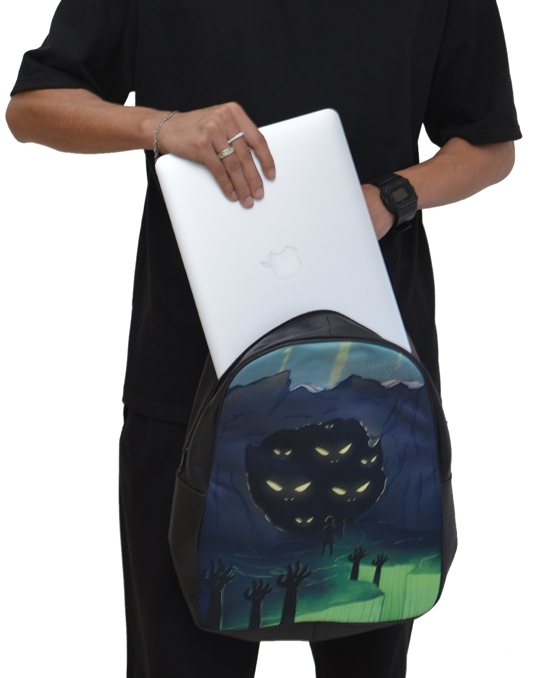 Urban Pitara Backpacks 1. Digitally Printed 2. Leatherette Bag 3. Easy Clean 4. With Laptop Sleeve inside (supports 13" MacBook) 5. Size of bag is 16.6"x 12.5" x 4.5" (Size in inches) 7. Backside is Solid Black Colour NOTE: Internal images are for size reference only, print will be same as 1st picture.Urban Pitara Backpacks