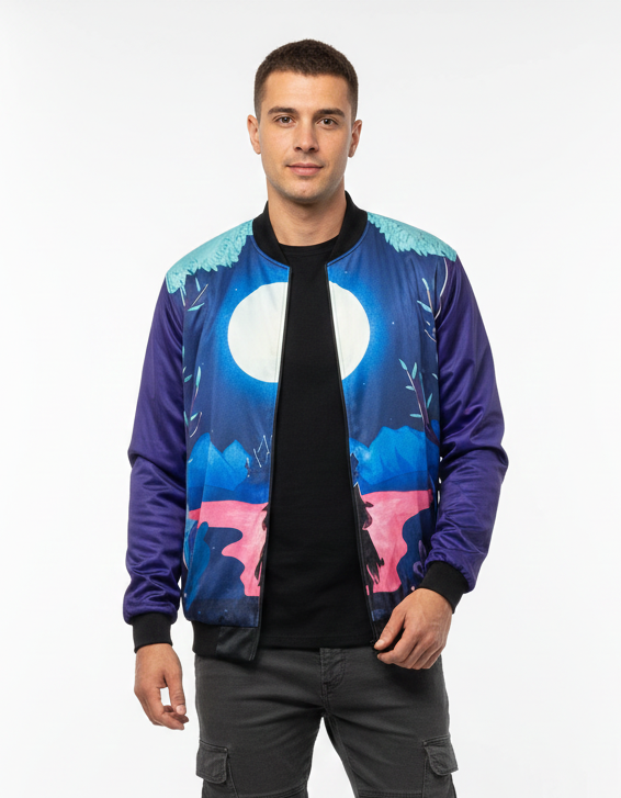 Introducing the Urban Pitara Bomber Jacket: digitally printed in high definition. Whether you're hitting the club scene or the streets, this lightweight and durable jacket is the perfect mix of warmth and comfort. Ideal for achieving that airport-ready look! Available in Two Special Fabrics All-Season ( Diagonal Fabric) Winter Fleece (For North Indian winters) More Details: Full Sleeves Regular Fit Full Front Open Zipper Style Two Side Pockets Ribbed Collar, Sleeves and Waist