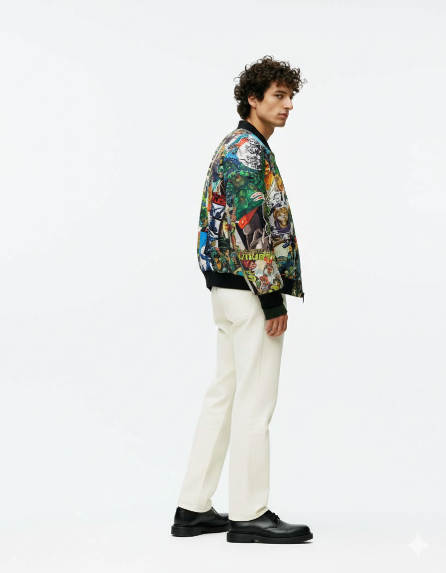 Introducing the Urban Pitara Bomber Jacket: digitally printed in high definition. Whether you're hitting the club scene or the streets, this lightweight and durable jacket is the perfect mix of warmth and comfort. Ideal for achieving that airport-ready look! Available in Two Special Fabrics All-Season ( Diagonal Fabric) Winter Fleece (For North Indian winters) More Details: Full Sleeves Regular Fit Full Front Open Zipper Style Two Side Pockets Ribbed Collar, Sleeves and WaistIntroducing the Urban Pitara Bomber Jacket: digitally printed in high definition. Whether you're hitting the club scene or the streets, this lightweight and durable jacket is the perfect mix of warmth and comfort. Ideal for achieving that airport-ready look!