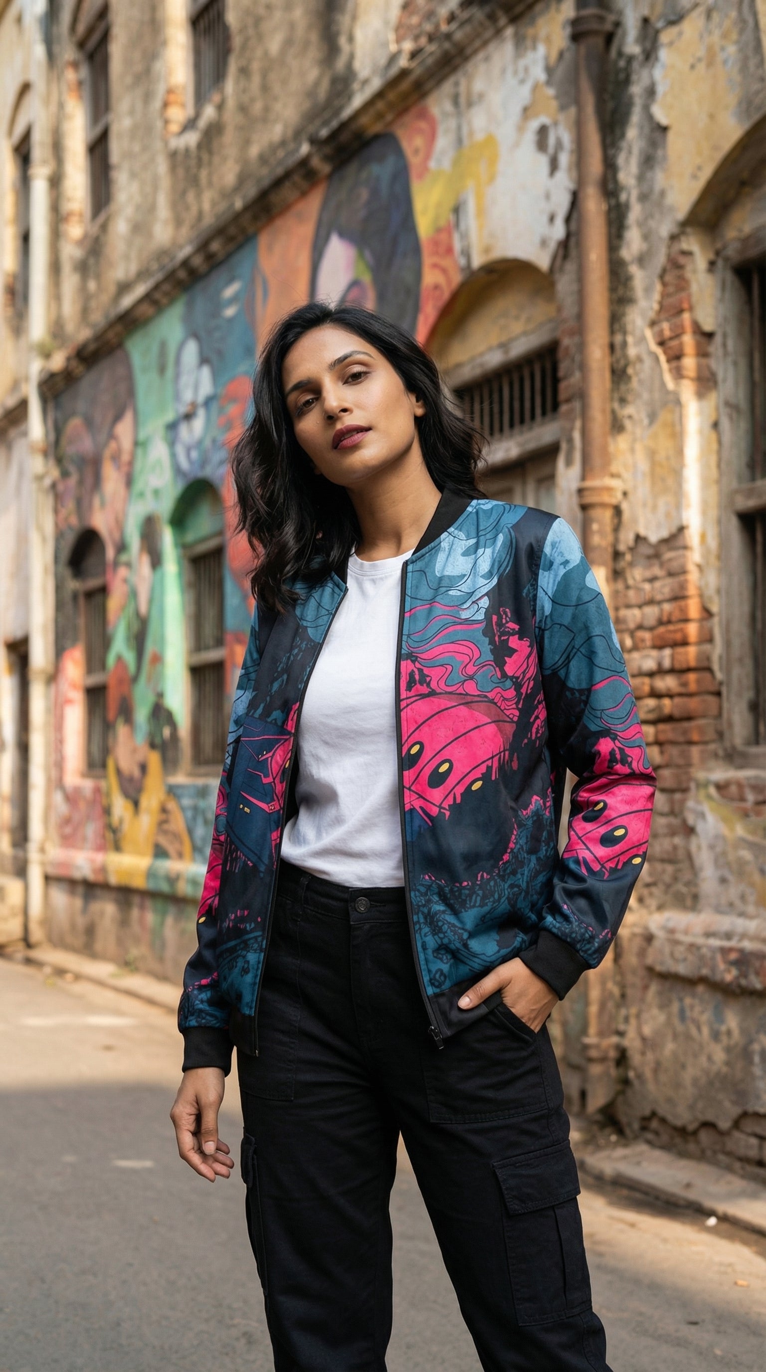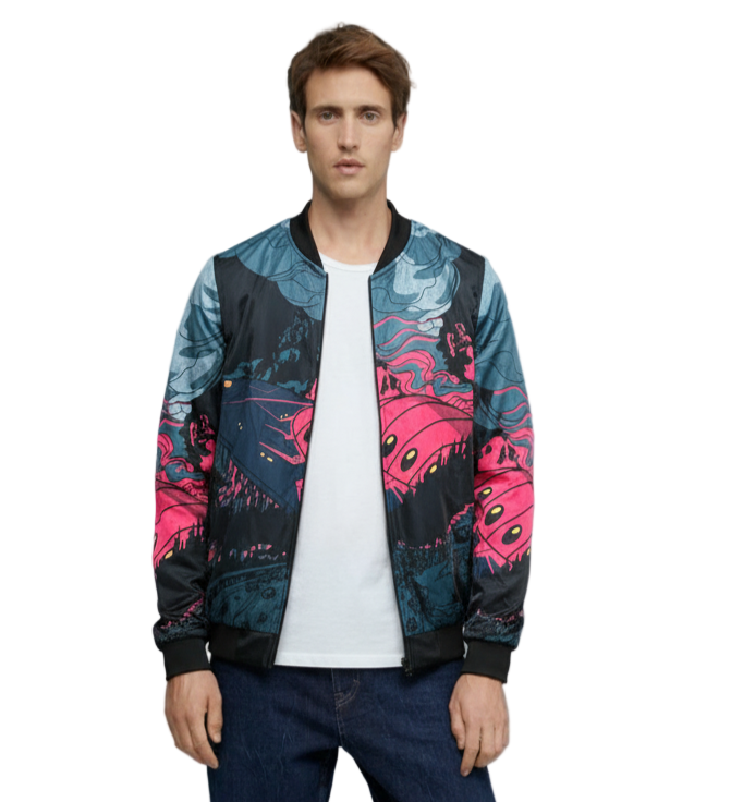 Introducing the Urban Pitara Bomber Jacket: digitally printed in high definition. Whether you're hitting the club scene or the streets, this lightweight and durable jacket is the perfect mix of warmth and comfort. Ideal for achieving that airport-ready look!