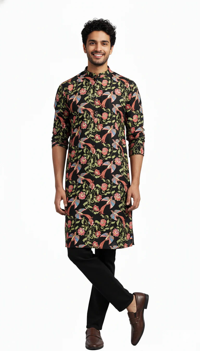 Note: Images are AI Generated, please refer to non model images for accurate graphic and colour details. Colours in 100% cotton may vary from colours in poly blend due to fabric's ink absorption capacity. We offer Kurta only, pyjamas are not included.