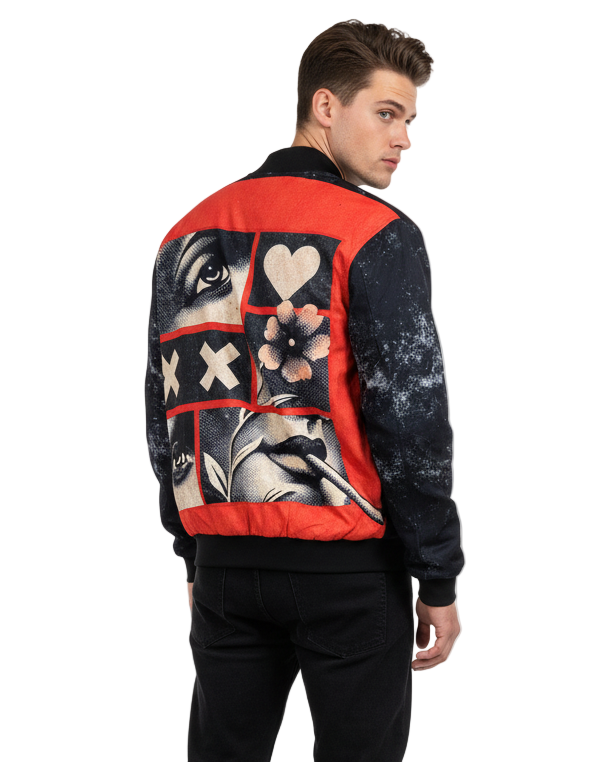 Introducing the Urban Pitara Bomber Jacket: digitally printed in high definition. Whether you're hitting the club scene or the streets, this lightweight and durable jacket is the perfect mix of warmth and comfort. Ideal for achieving that airport-ready look! Grunges are part of the artwork Available in Two Special Fabrics All-Season ( Diagonal Fabric) Winter Fleece (For North Indian winters) More Details: Full Sleeves Regular Fit Full Front Open Zipper Style Two Side Pockets Ribbed Collar, Sleeves and WaistIntroducing the Urban Pitara Bomber Jacket: digitally printed in high definition. Whether you're hitting the club scene or the streets, this lightweight and durable jacket is the perfect mix of warmth and comfort. Ideal for achieving that airport-ready look!