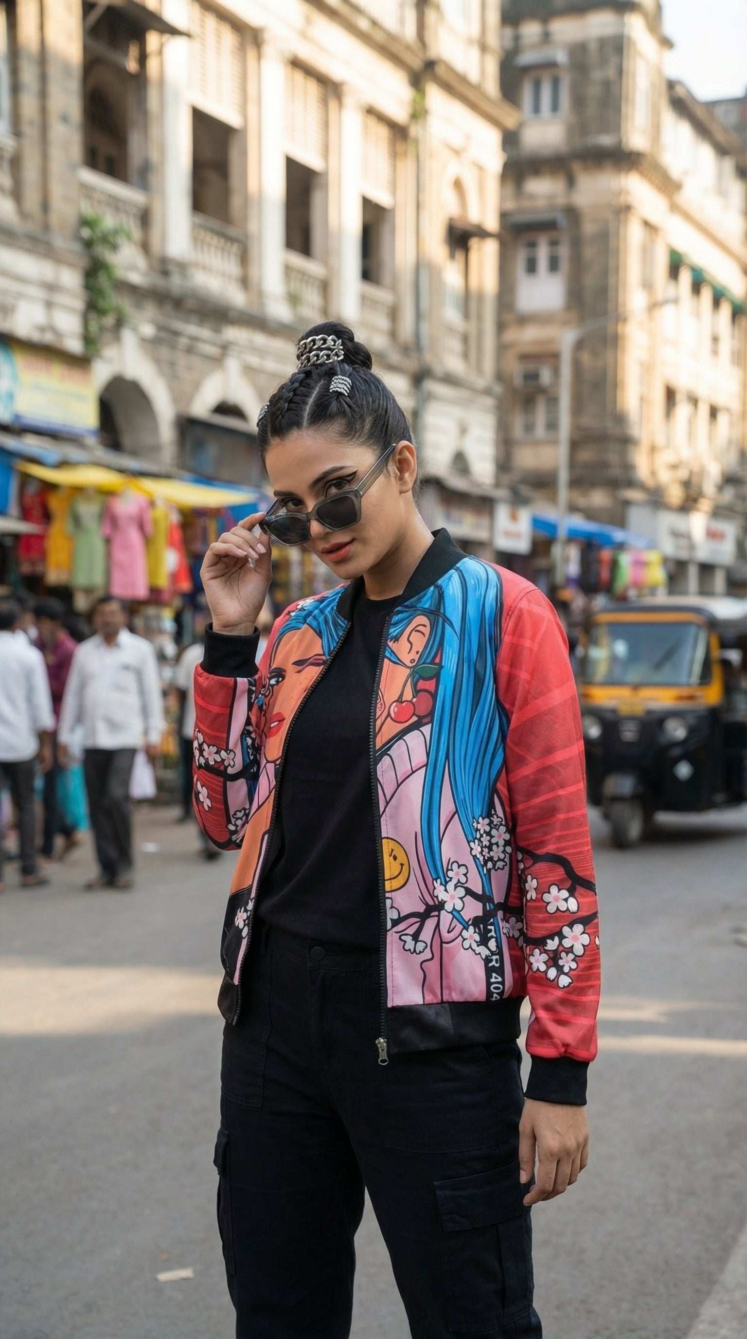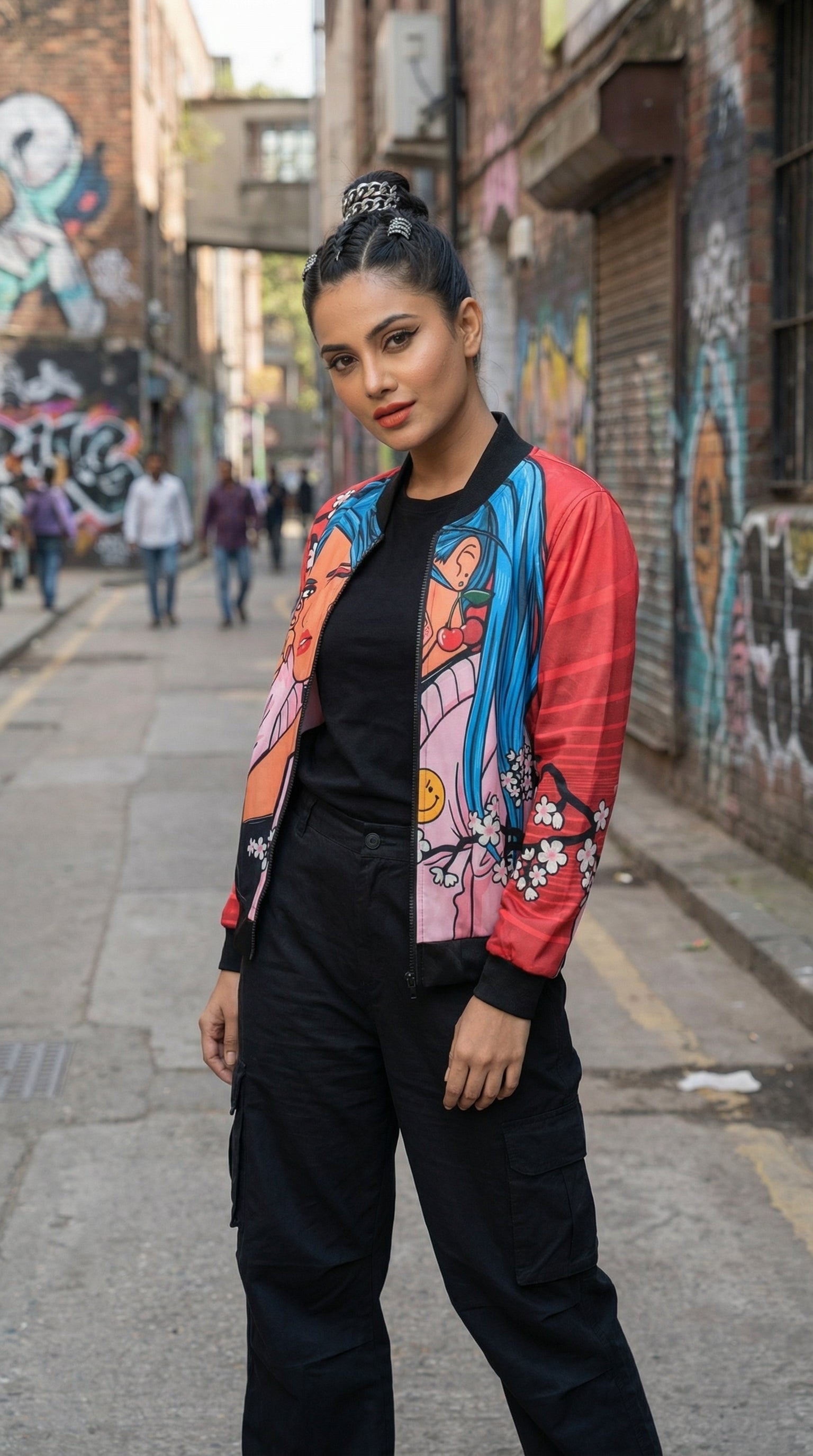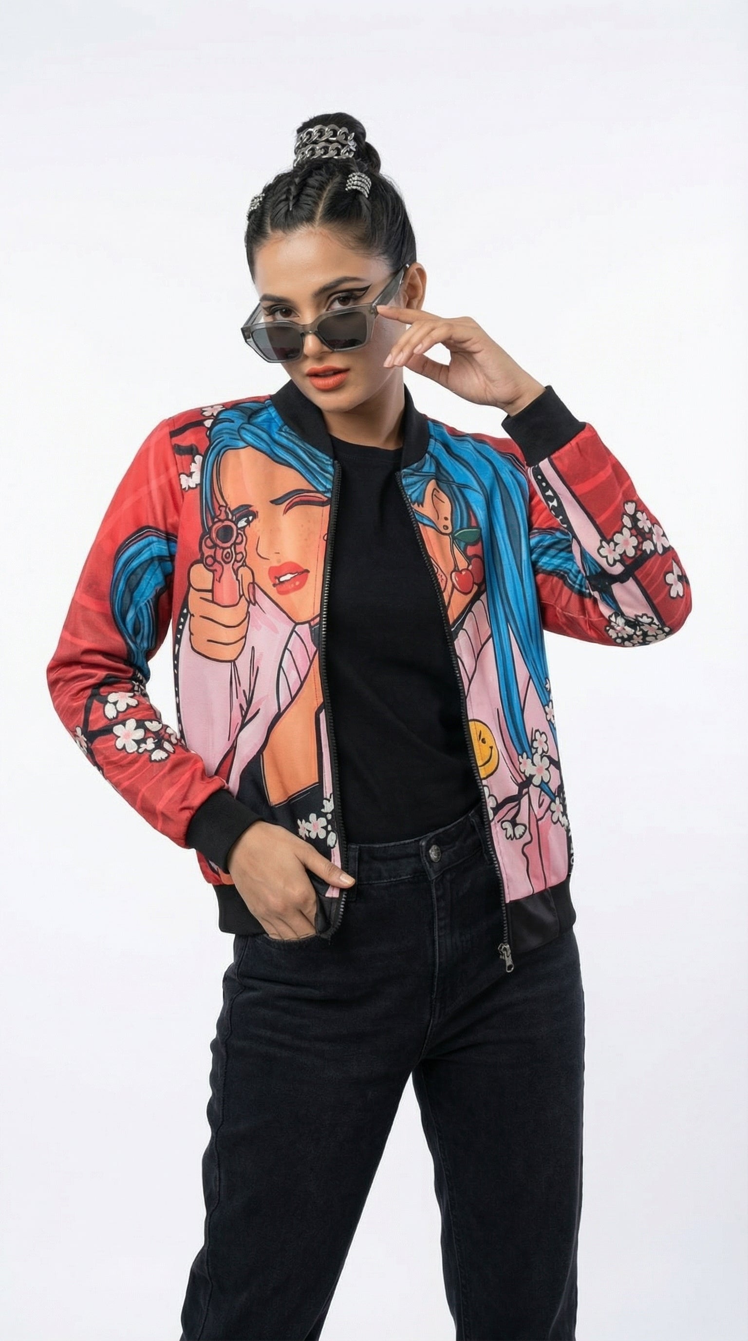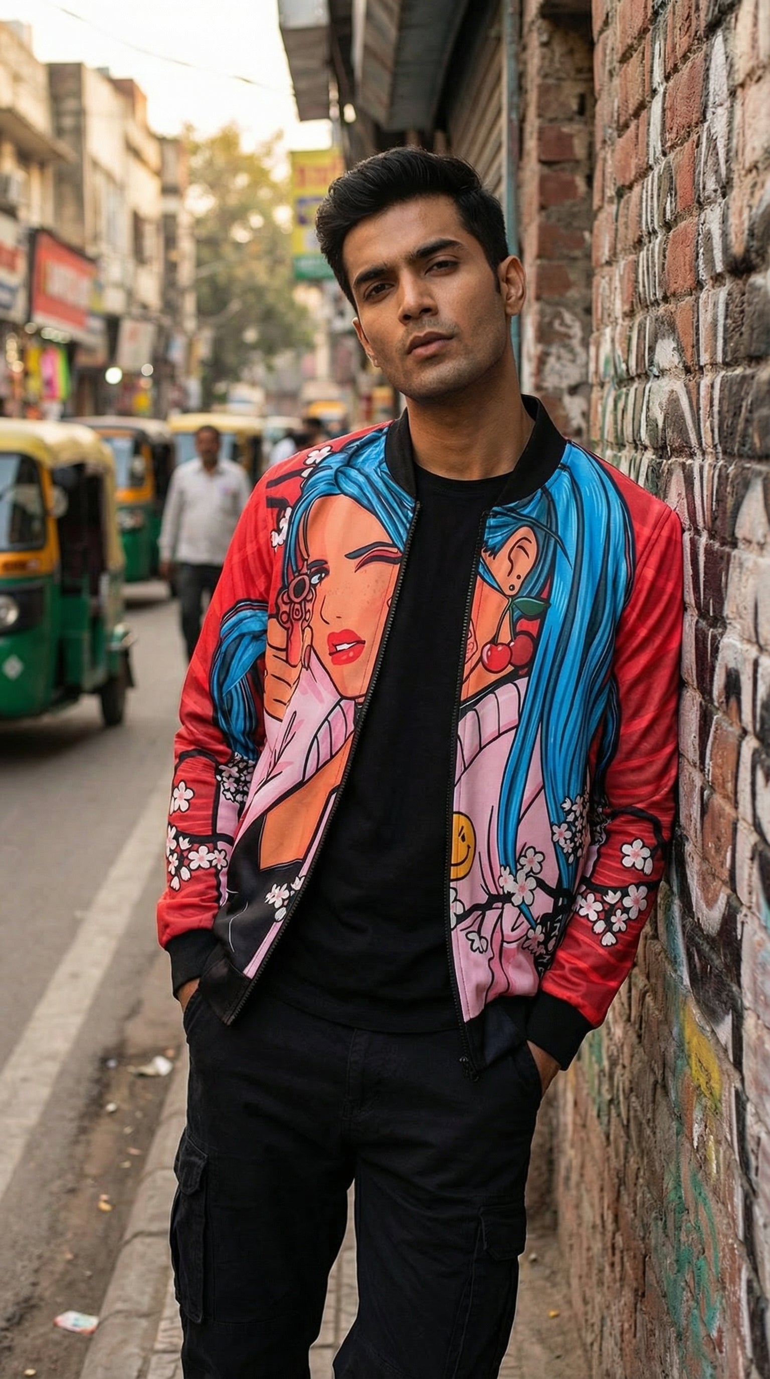 Introducing the Urban Pitara Bomber Jacket: digitally printed in high definition. Whether you're hitting the club scene or the streets, this lightweight and durable jacket is the perfect mix of warmth and comfort. Ideal for achieving that airport-ready look! Available in Two Special Fabrics All-Season ( Diagonal Fabric) Winter Fleece (For North Indian winters) More Details: Full Sleeves Regular Fit Full Front Open Zipper Style Two Side Pockets Ribbed Collar, Sleeves and Waist