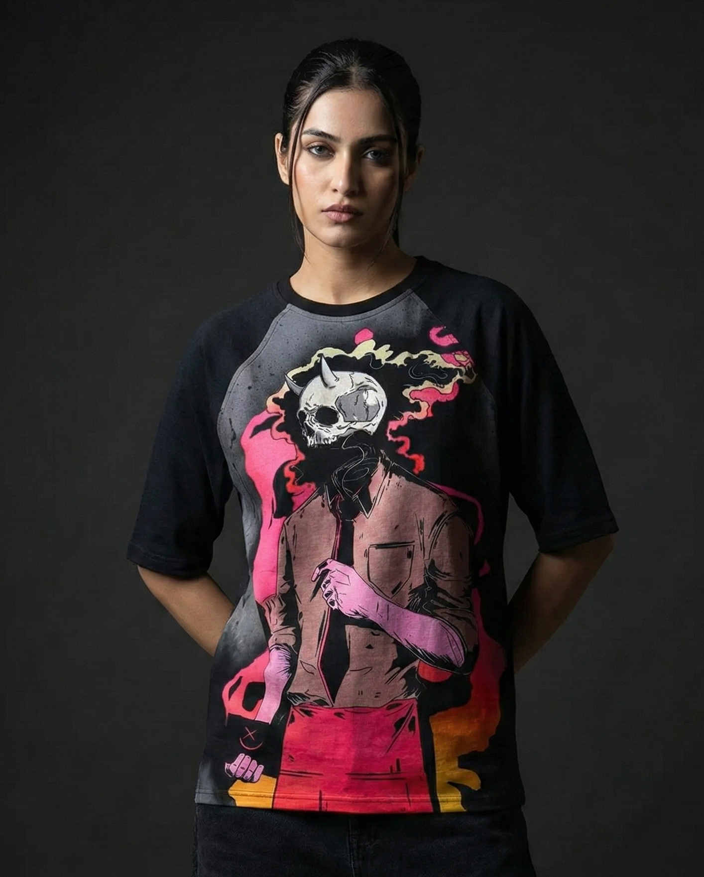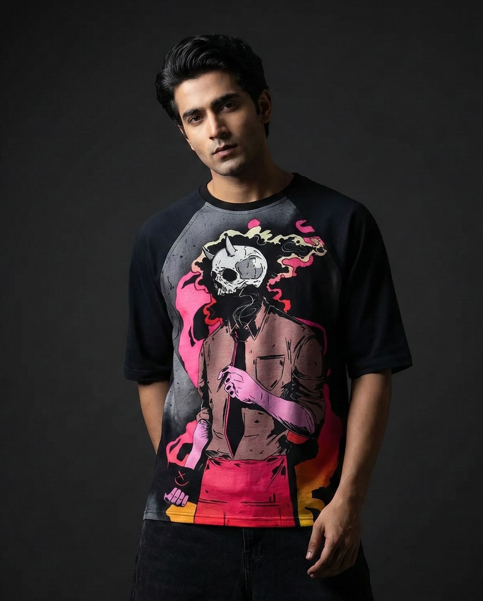 Urban Pitara Oversized T-shirt - high definition digitally printed; call it streetwear; lightweight and sturdy - funky as hell More Details: Oversized Raglan Fit Ribbed Collar Streetwear Cotton sleeves and back, Ring Spun Poly Printed chest (180 GSM) Solid BackUrban Pitara Oversized T-shirt - high definition digitally printed; call it streetwear; lightweight and sturdy - funky as hell