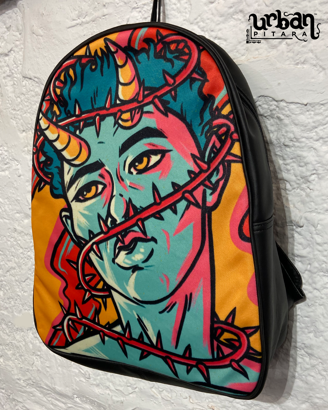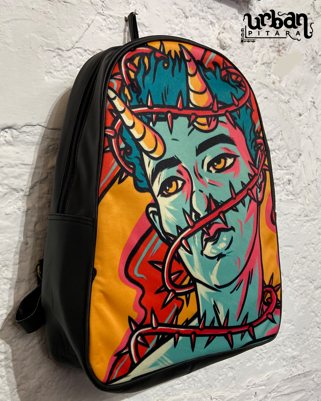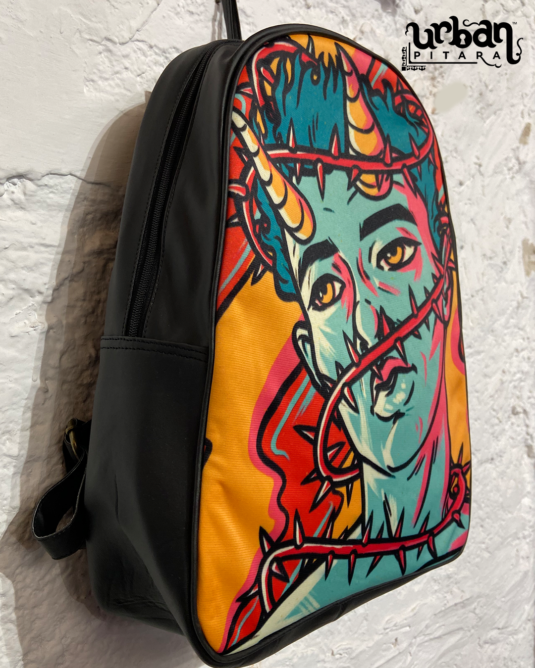 Urban Pitara Backpacks 1. Digitally Printed 2. Leatherette Bag 3. Easy Clean 4. With Laptop Sleeve inside (supports 13" MacBook) 5. Size of bag is 16.6"x 12.5" x 4.5" (Size in inches) 7. Backside is Solid Black ColourUrban Pitara Backpacks
