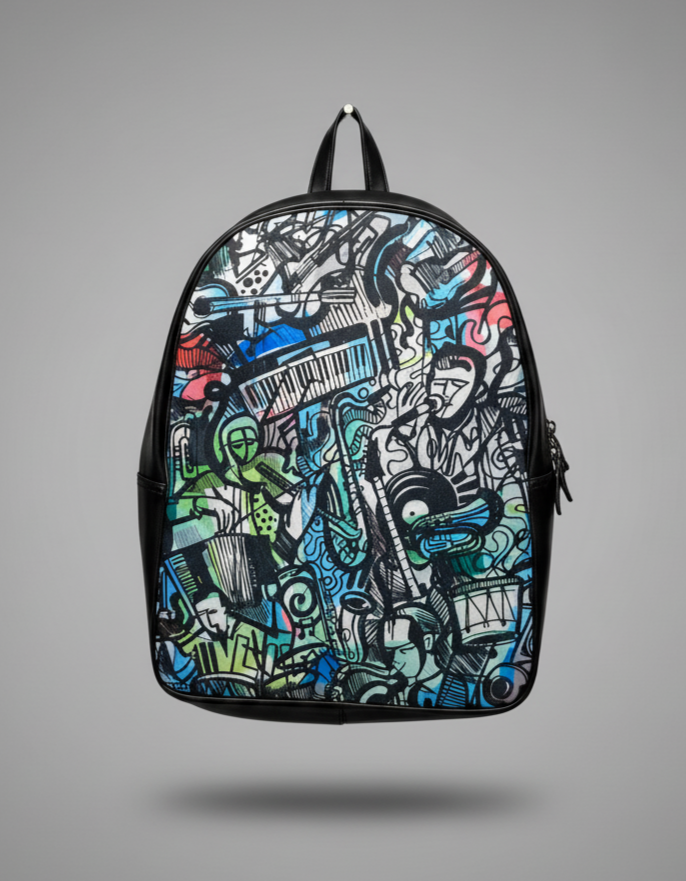 Urban Pitara Backpacks 1. Digitally Printed 2. Leatherette Bag 3. Easy Clean 4. With Laptop Sleeve inside (supports 13" MacBook) 5. Size of bag is 16.6"x 12.5" x 4.5" (Size in inches) 7. Backside is Solid Black ColourUrban Pitara Backpacks