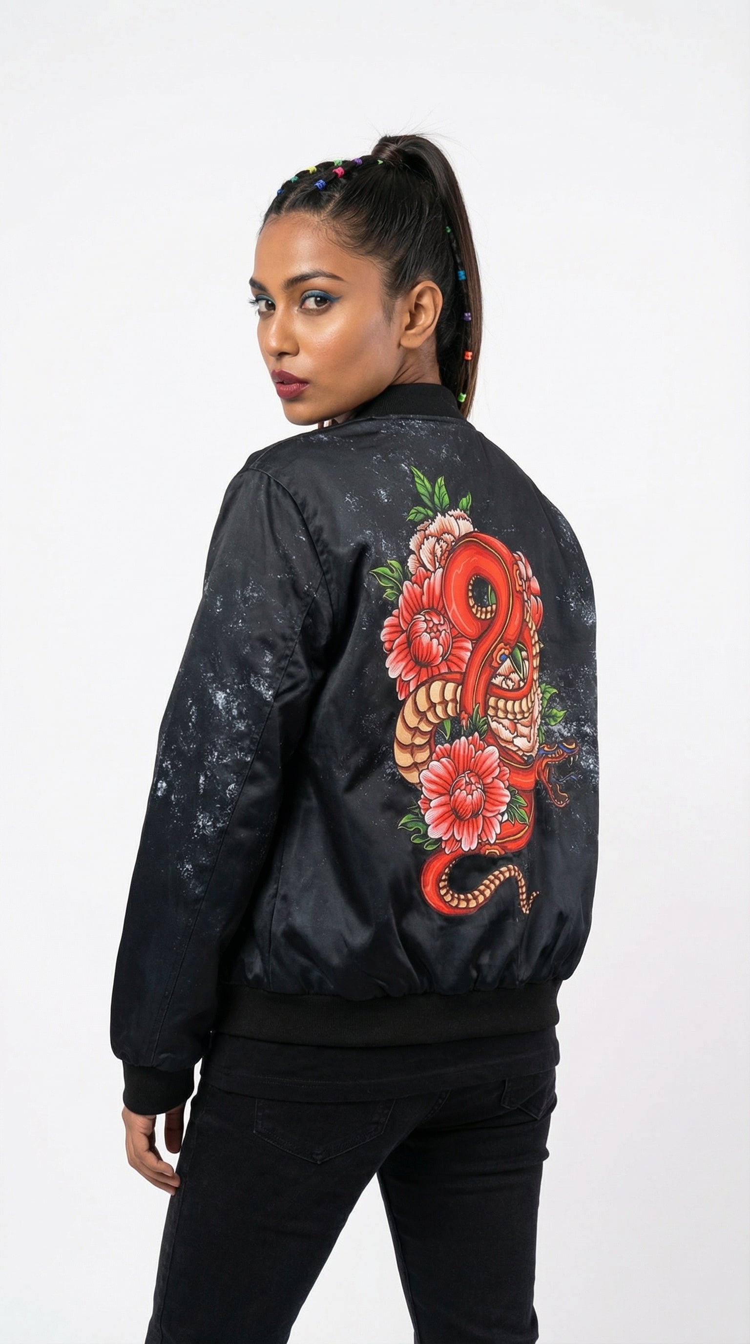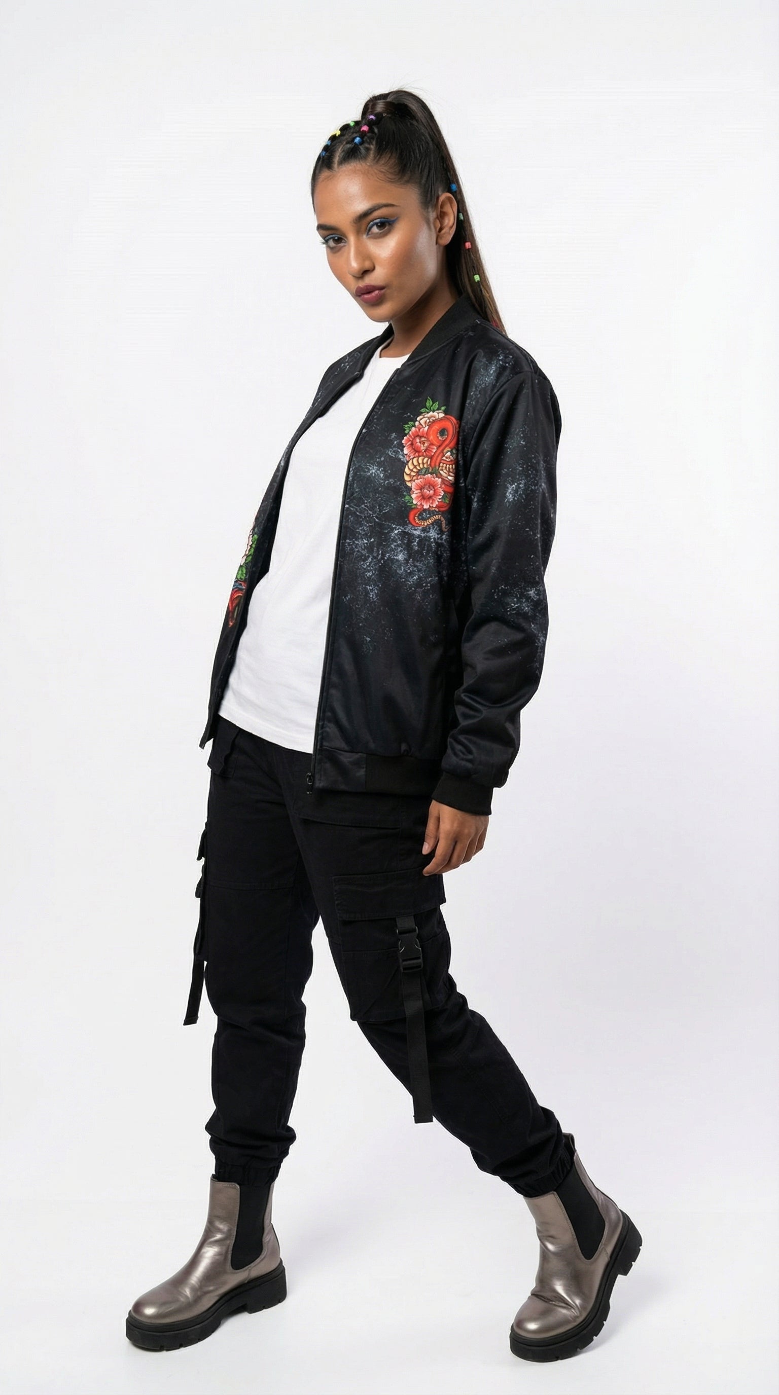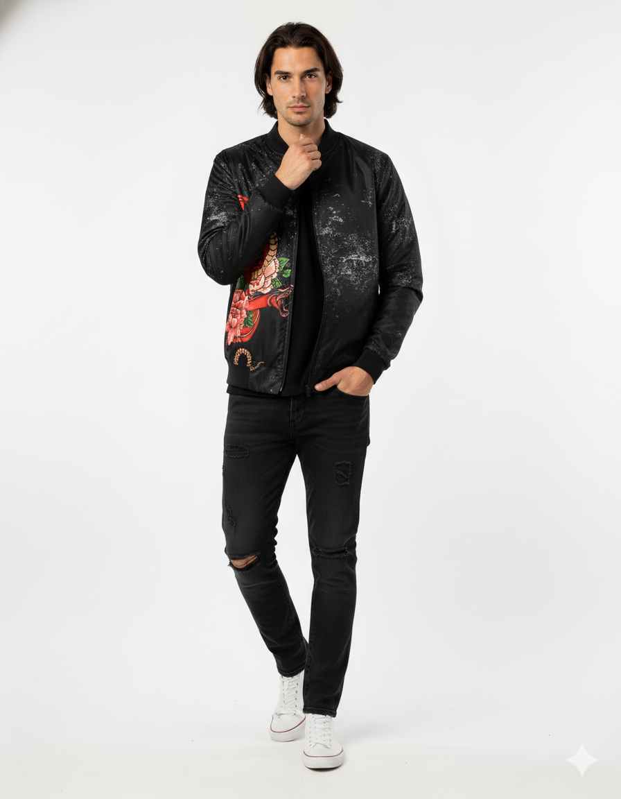 Introducing the Urban Pitara Bomber Jacket: digitally printed in high definition. Whether you're hitting the club scene or the streets, this lightweight and durable jacket is the perfect mix of warmth and comfort. Ideal for achieving that airport-ready look!