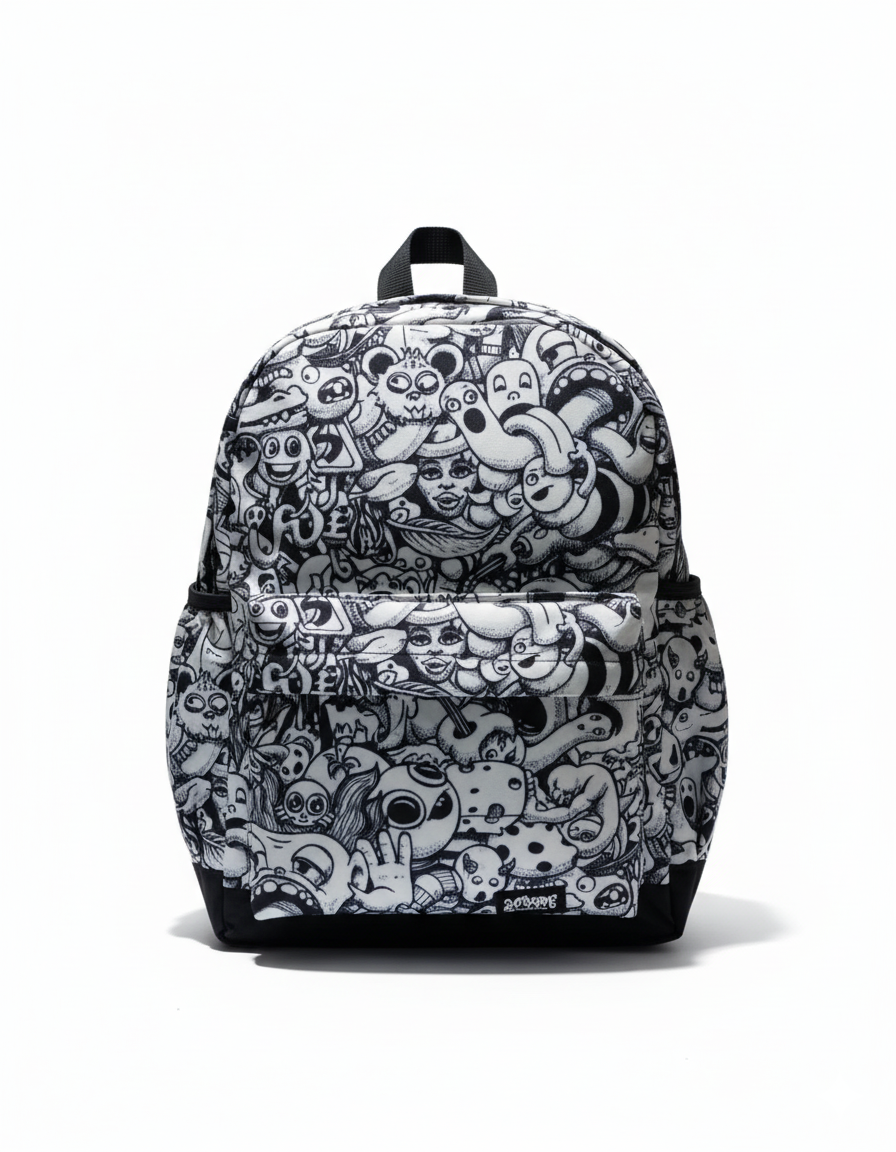 White Doodle Canvas Backpack