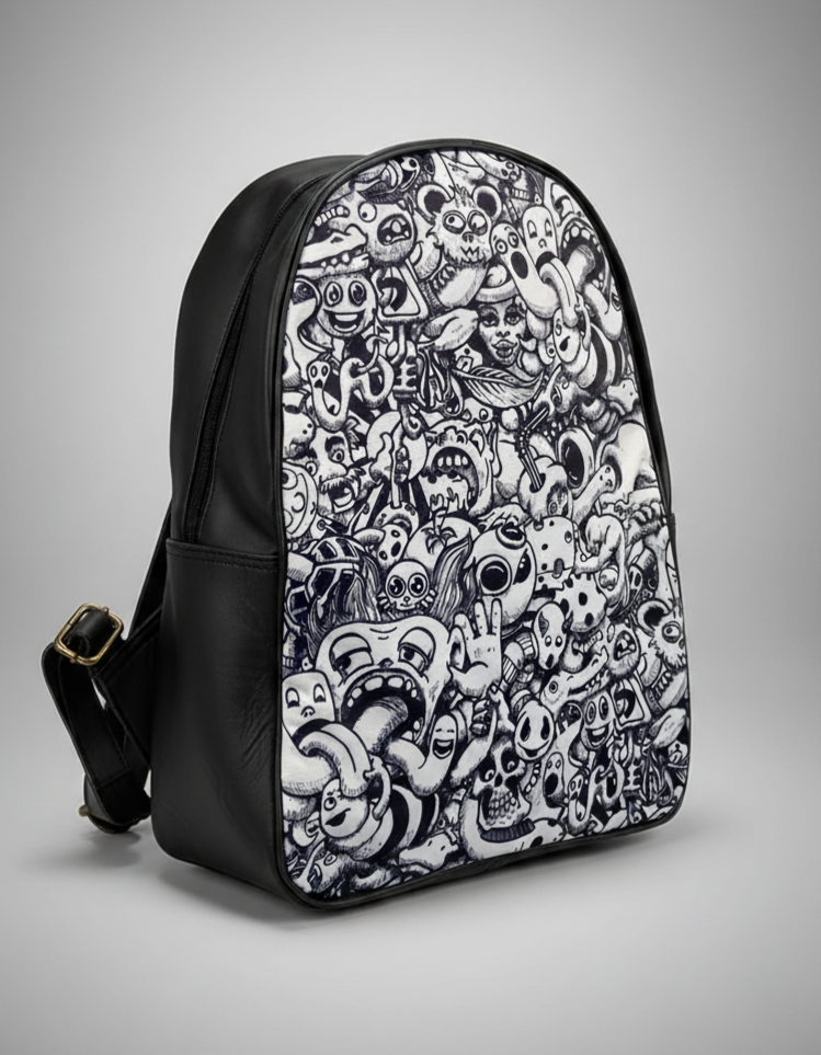 White Doodle D Faux Leather Backpack